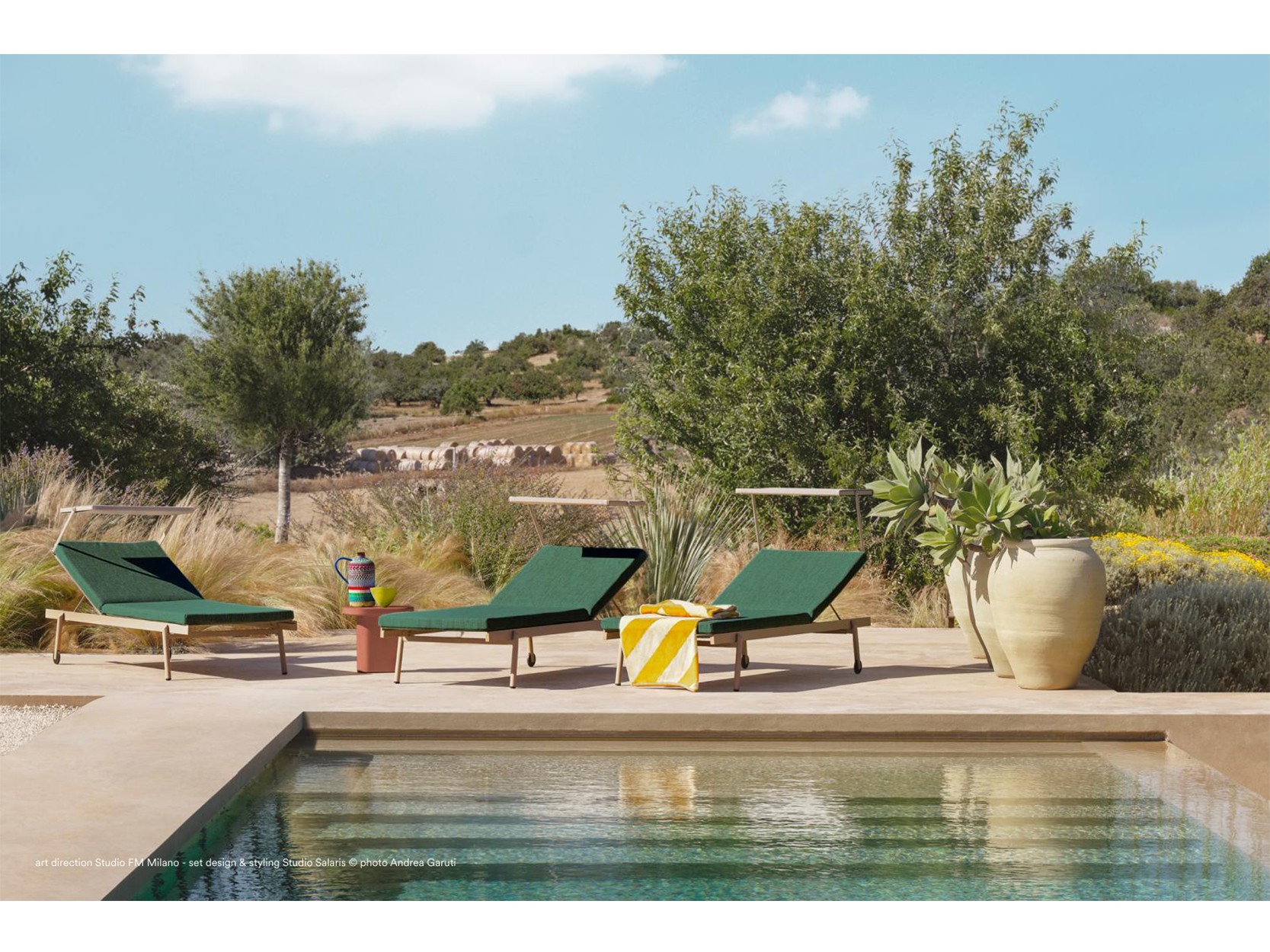 - Rail este un șezlong de exterior caracterizat prin linii simple și moderne, ideal pentru momente de relaxare pe terasă, în grădină sau lângă piscină.