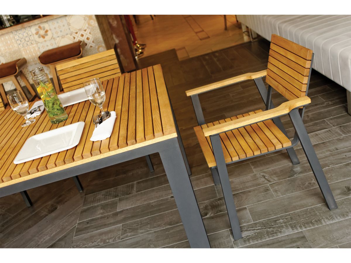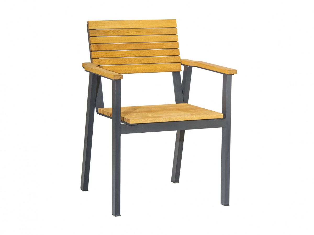 - Scaunul cu mânere Rupert este realizat din lemn de robinia și ramă din metal.
