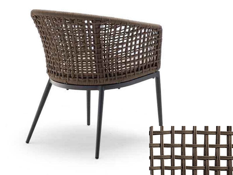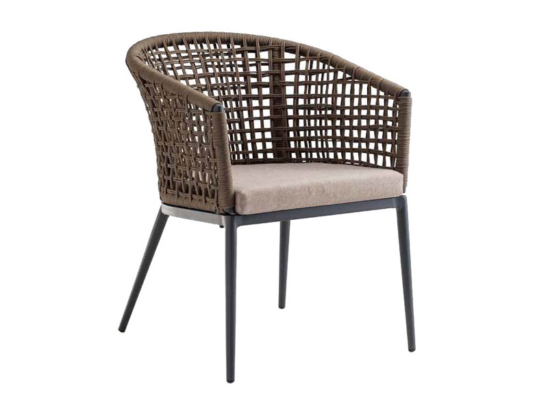 - Scaun realizat din aluminiu si impletitura cu frânghie din poliolefină, în conformitate cu ultimele tendințe.