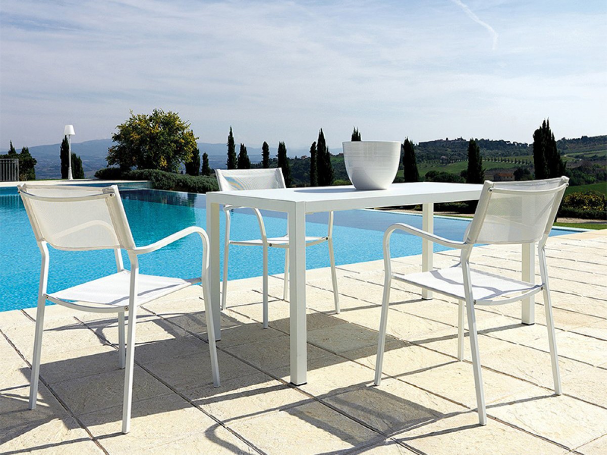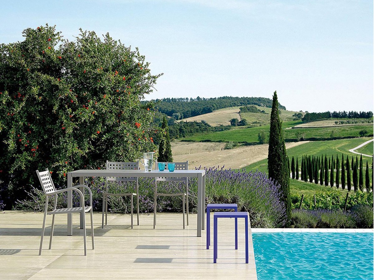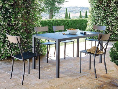 - Tiago este o masă din fier galvanizat, acoperită cu pulbere, adecvată pentru utilizare în aer liber.