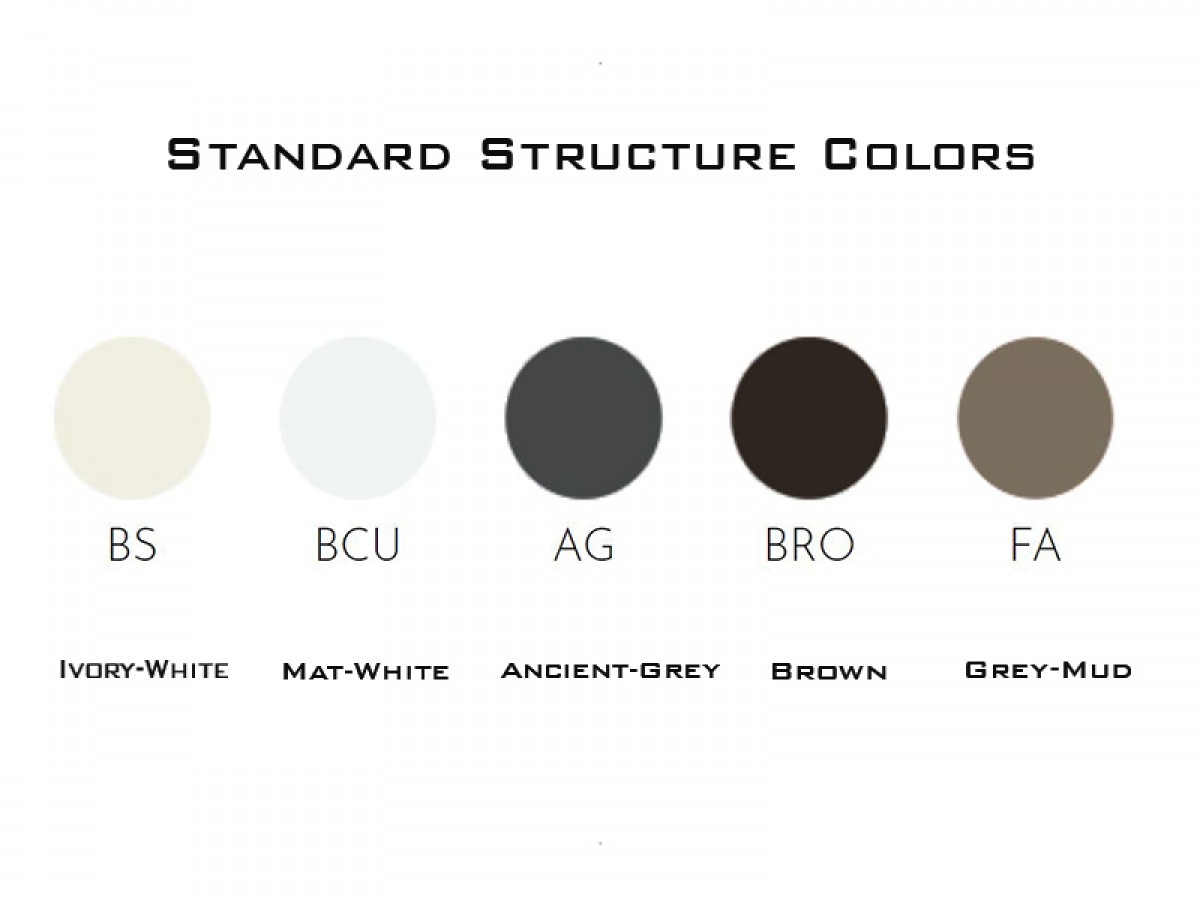 - Este disponibilă în diferite finisaje: BS-Alb Ivoire, BCU-Alb- Mat, AG-Antic Gri, BRO-Maro, FA-Gri nămol.