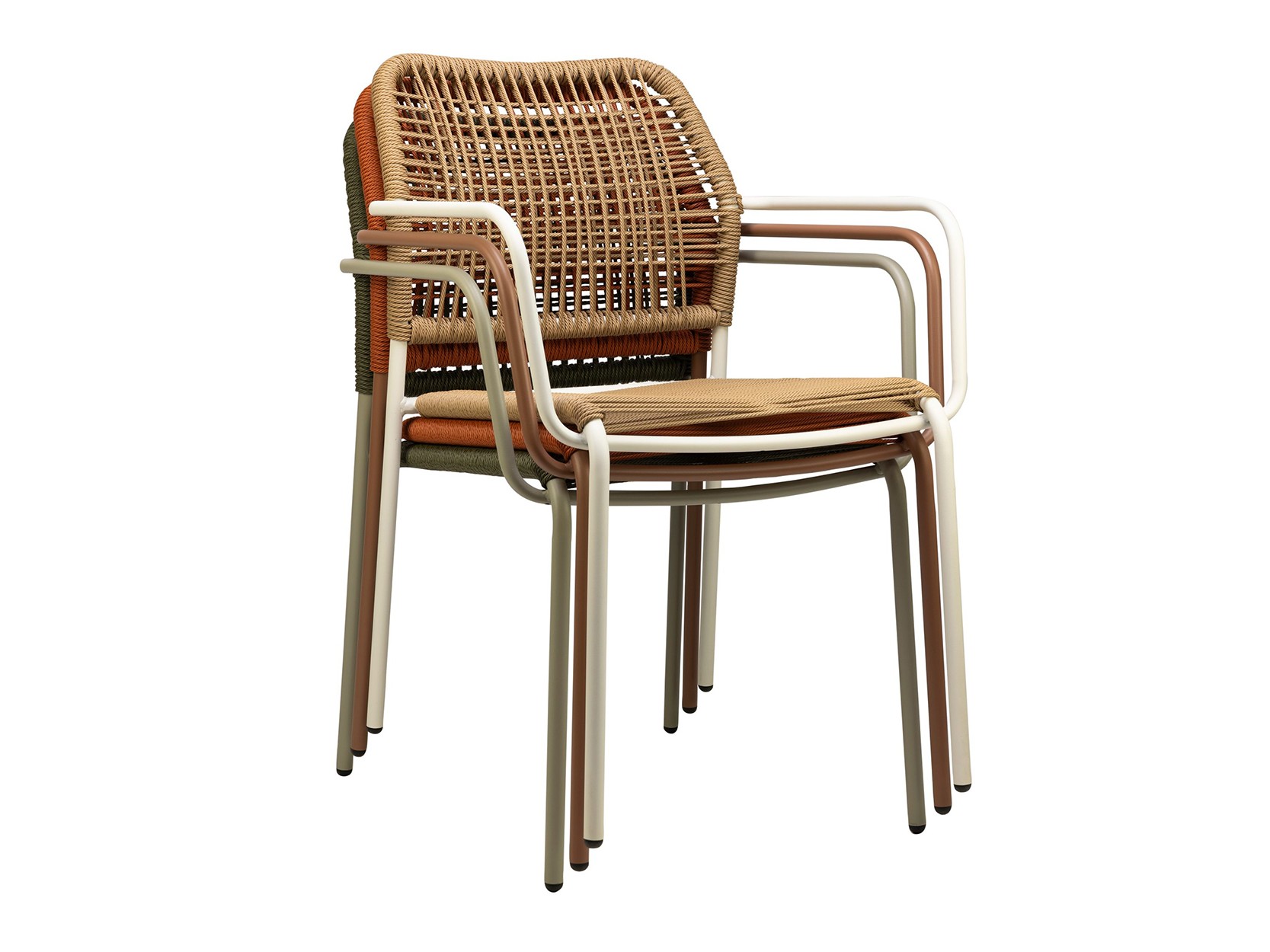 - Împletitura din frânghie este rezistentă la intemperii, iar scaunele sunt suprapozabile, ideale pentru utilizarea în industria ospitalității.