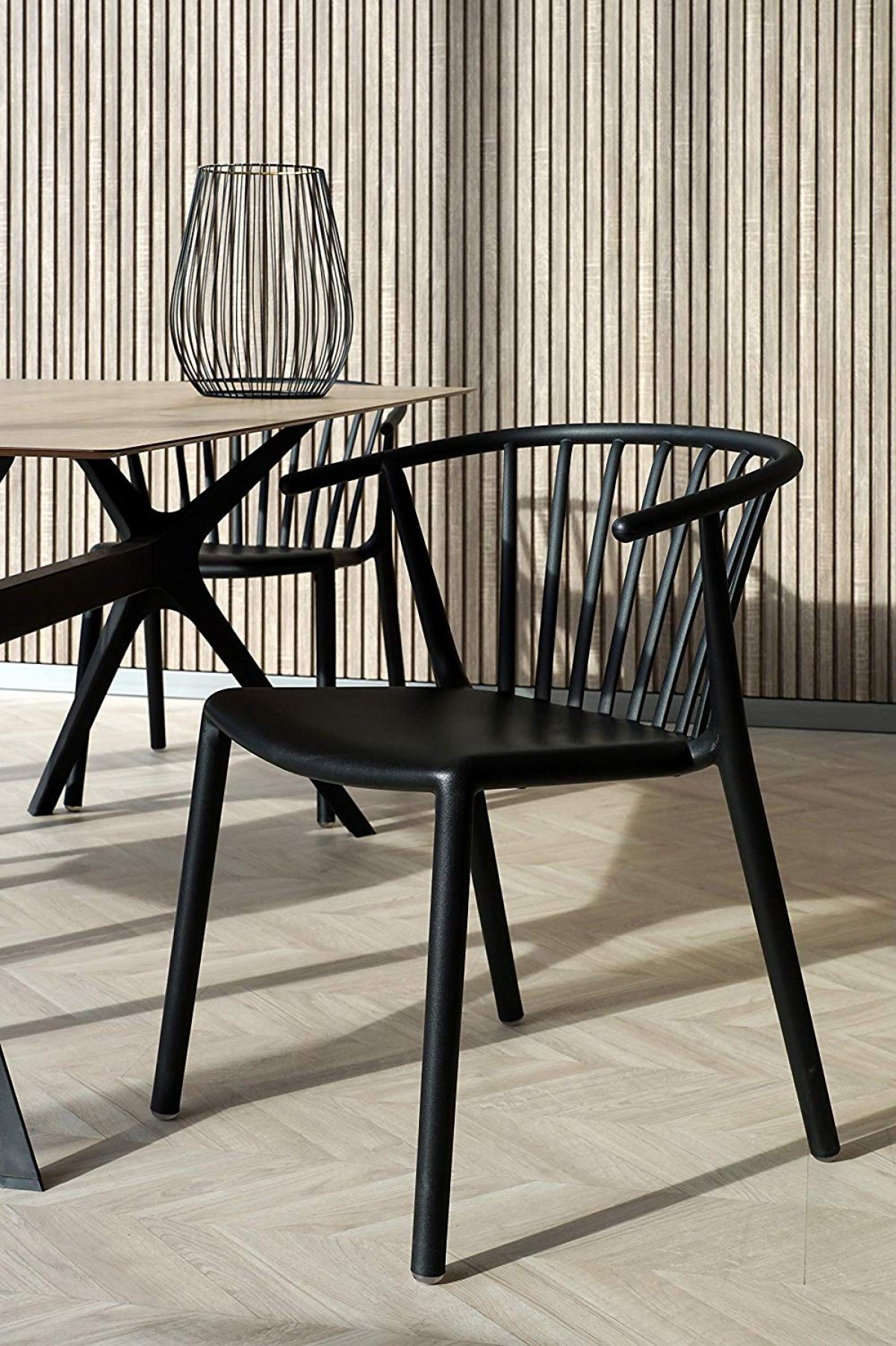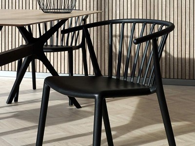- Scaun de terasă versatil, realizat din polipropilenă și fibră de sticlă.