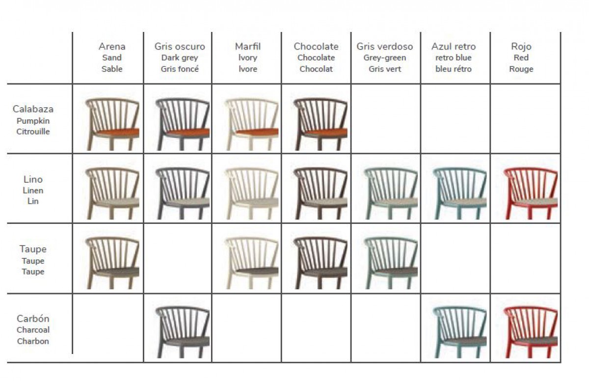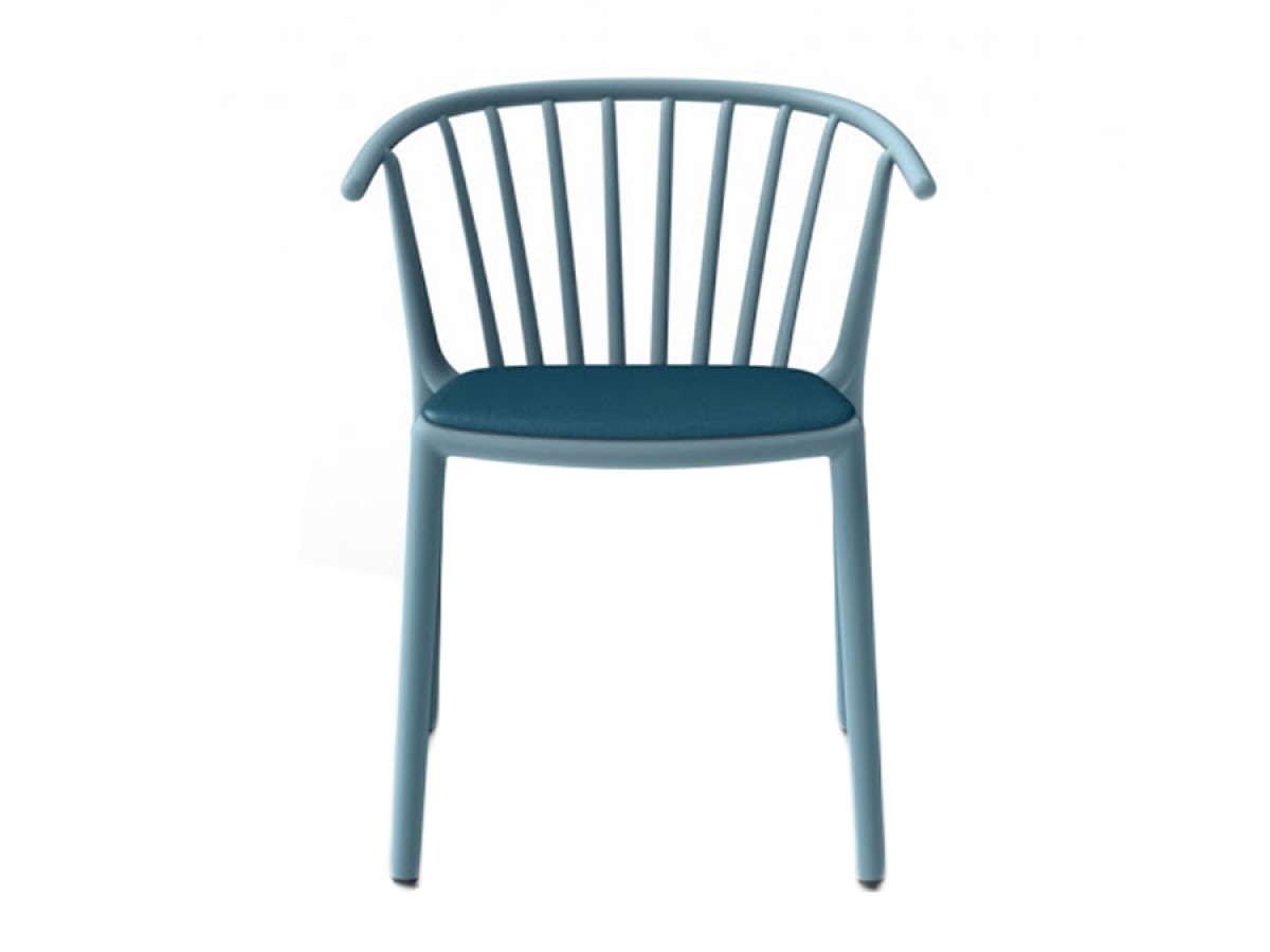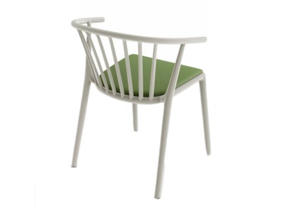 - Scaun de terasă tapițat, realizat din polipropilenă și fibră de sticlă.