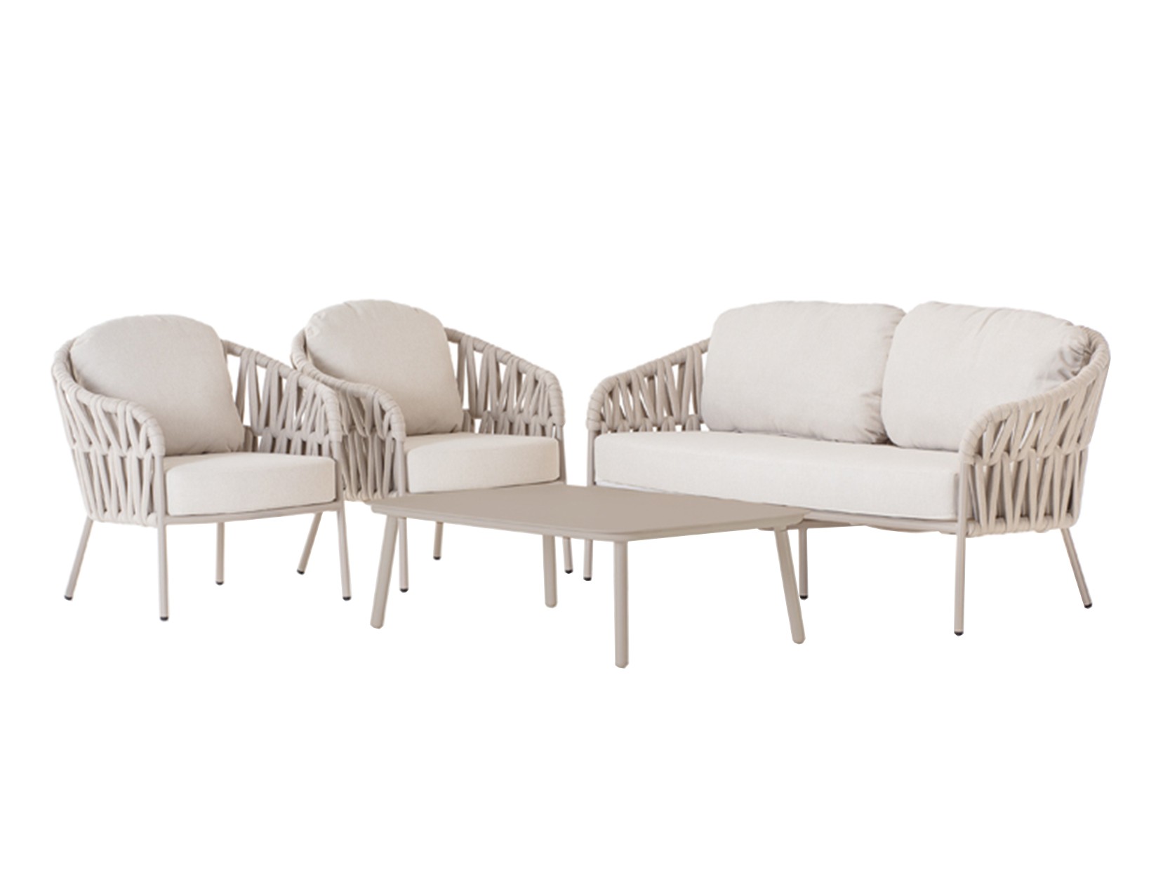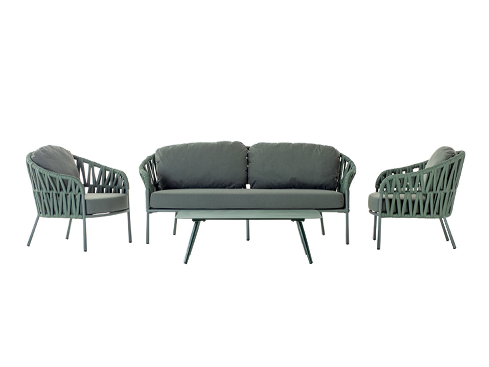 - Compus dintr-un divan, două fotolii și o măsuță cu blat din aluminiu.