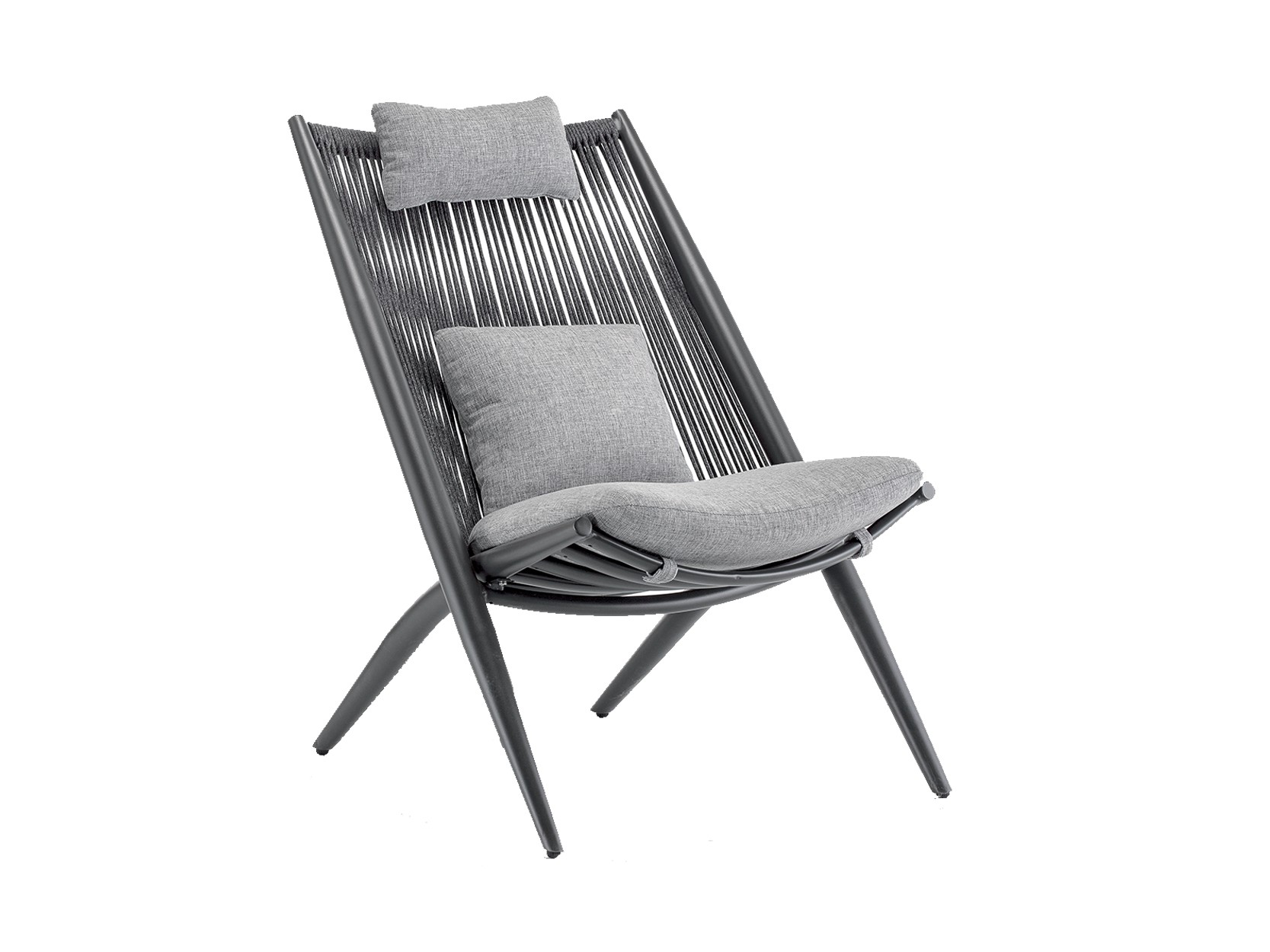 - Scaun demontabil din aluminiu vopsit, împletit cu frânghie acrilică tratată cu Teflon.