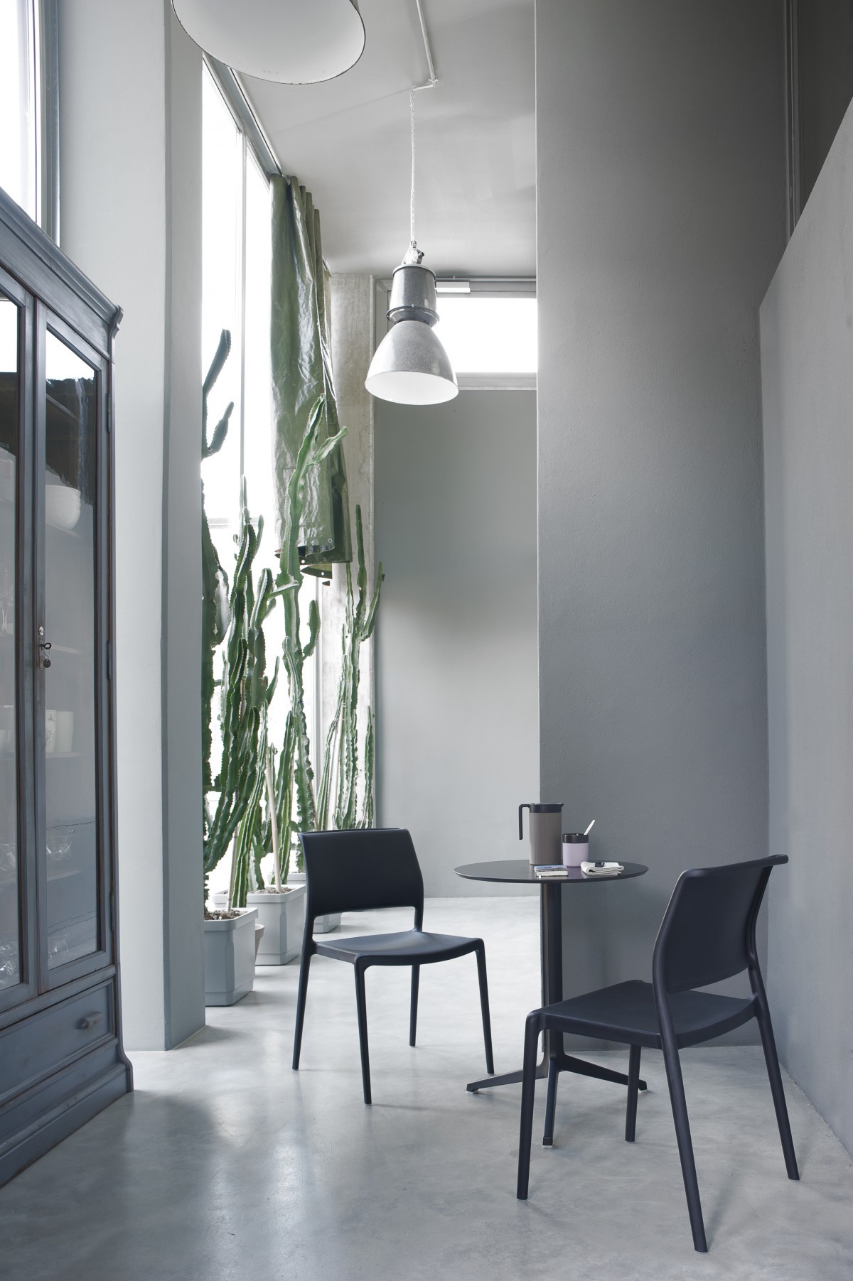 - Ara este un scaun din polipropilenă, întărit cu fibră de sticlă.