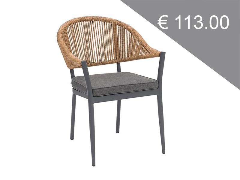 - Scaunul are un cadru solid din aluminiu antracit și este acoperit cu rafie rezistentă la UV, care oferă un aspect unic.