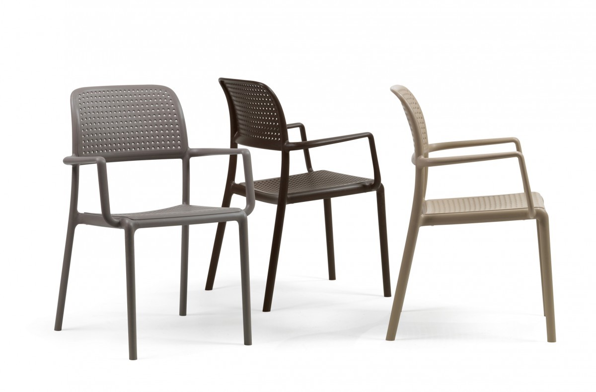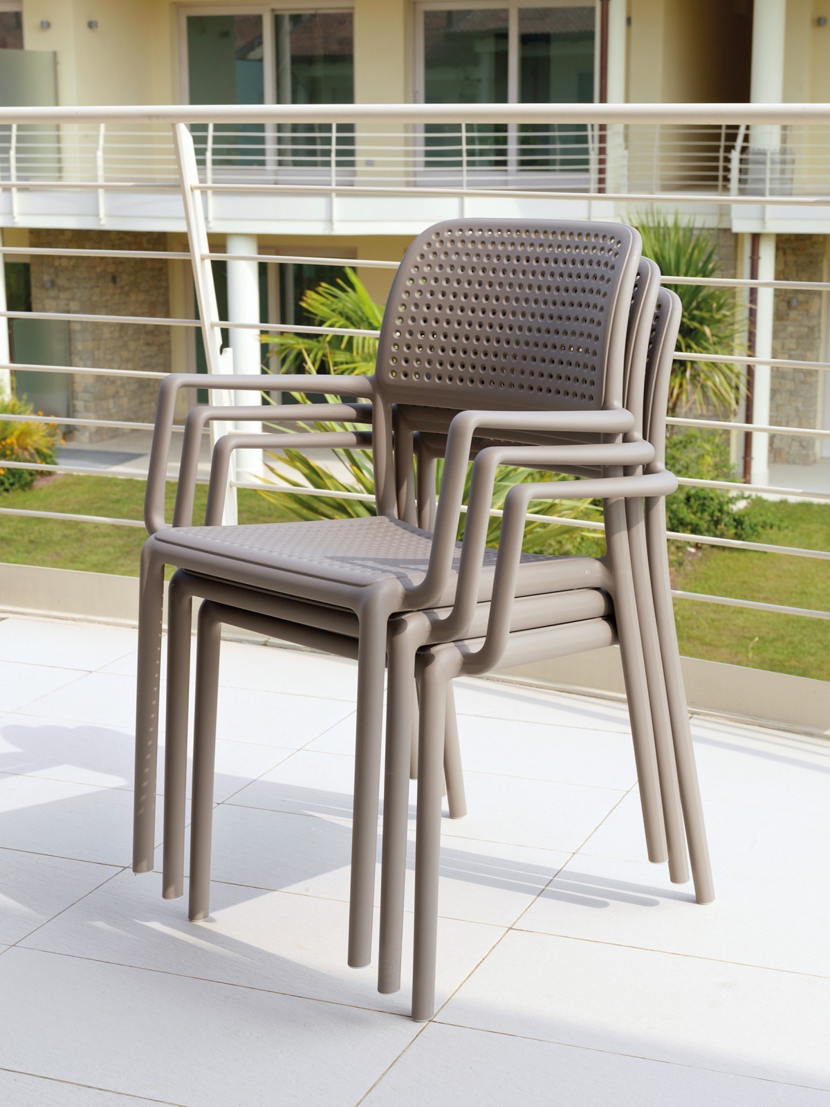 - Scaun modern de terasă, cu brațe din polipropilenă.