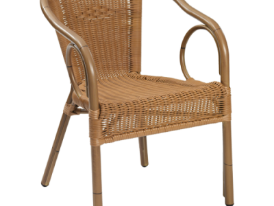 - Scaun de terasă, având cadrul de aluminiu vopsit în câmp electrostatic, de nuanța bamboo.
