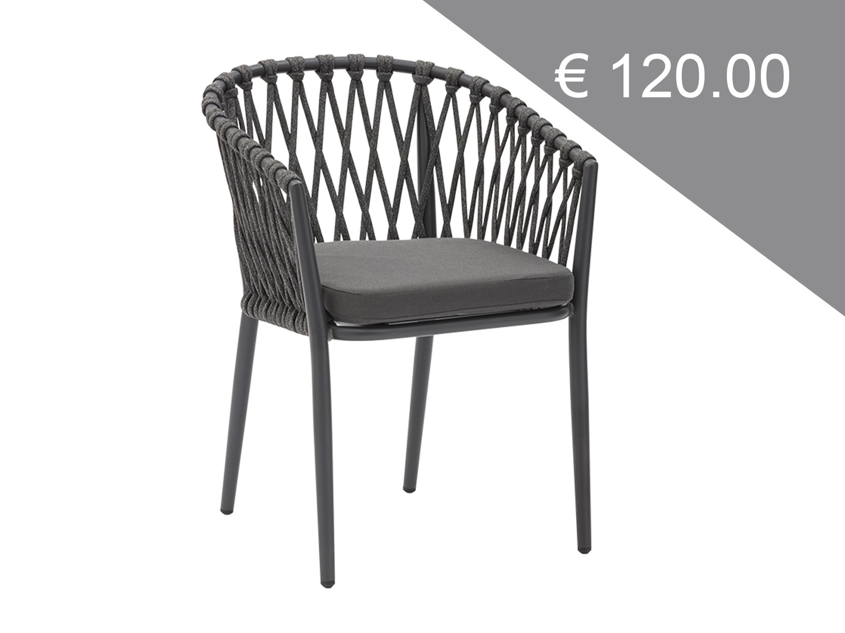 - Scaun de exterior realizat din aluminiu și împletitură din frânghie, în conformitate cu ultimele tendințe.