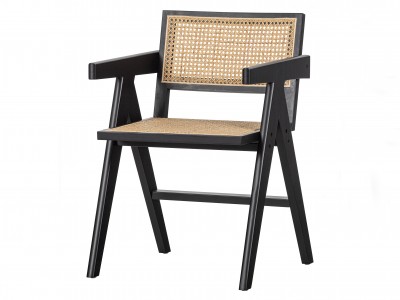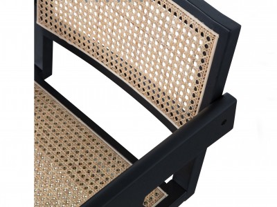 - Scaun de restaurant cu cadru de din lemn, șezut și spătar din ratan.