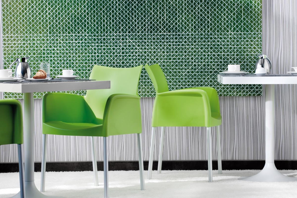 - Ice este un scaun din polipropilenă, rezistent la razele UV și apă.