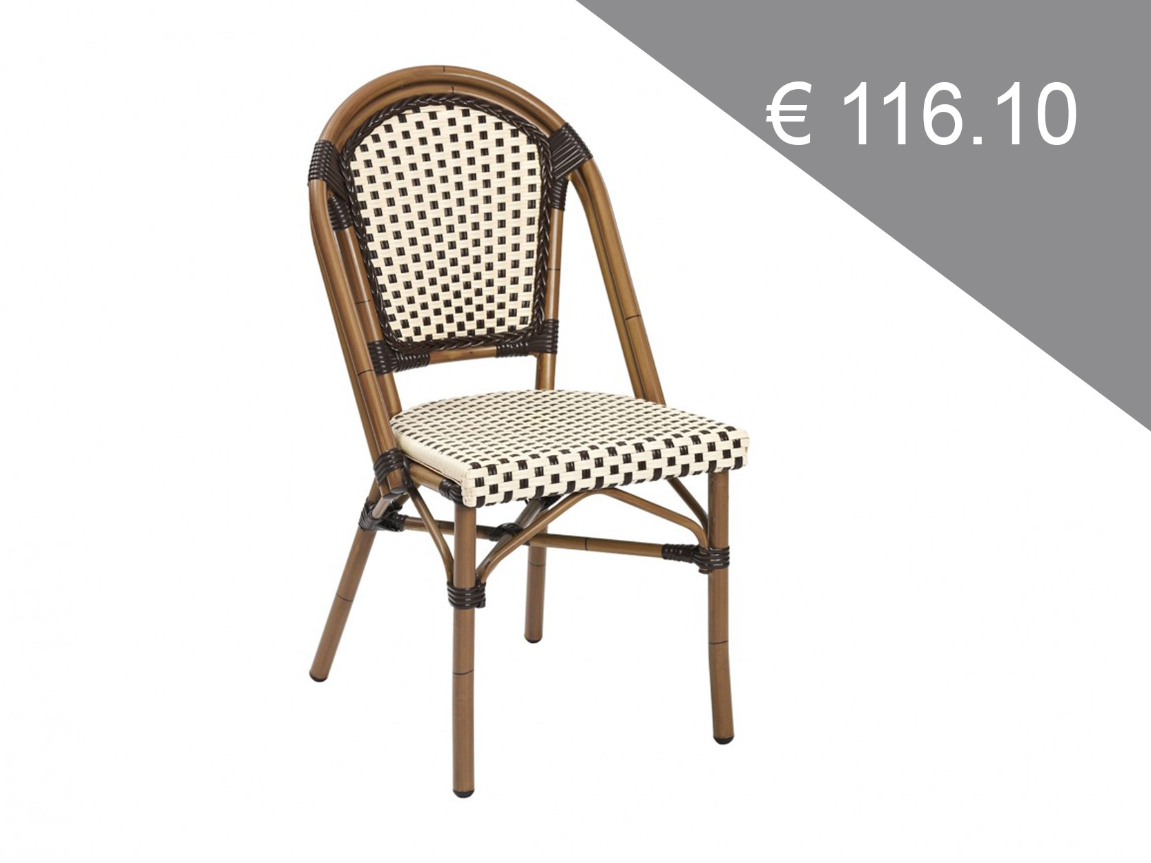 - Scaun de terasă, având cadrul de aluminiu vopsit în câmp electrostatic, o nuanță apropiată de cea bamboo.