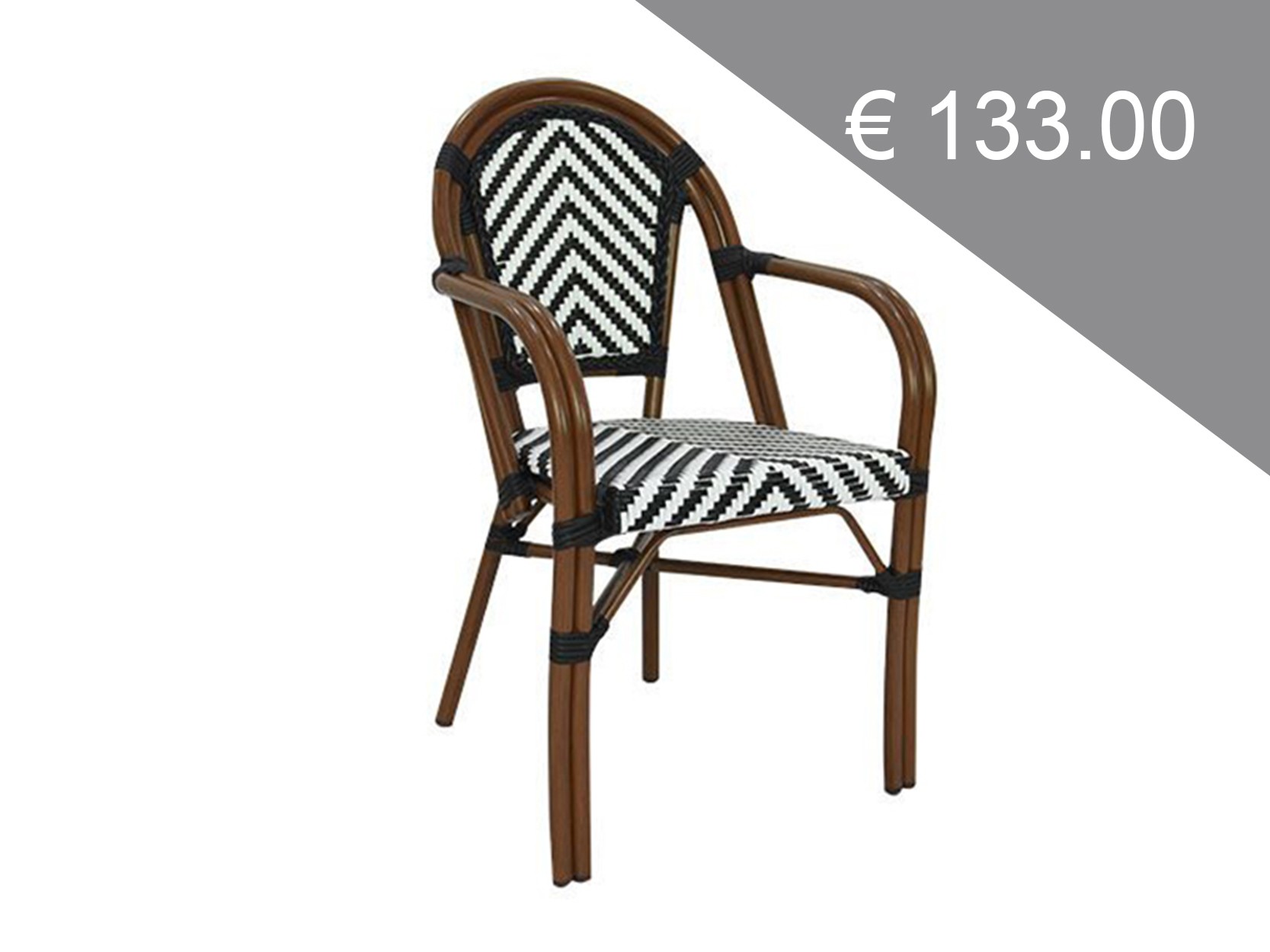 Surprinzător și sofisticat. Scaunul pentru terasă Jacques cu brațe se potrivește perfect cu stilul "Café de Paris".