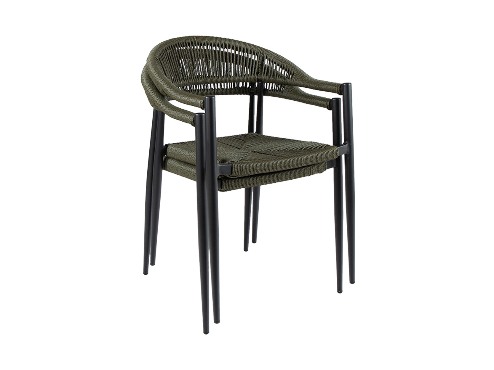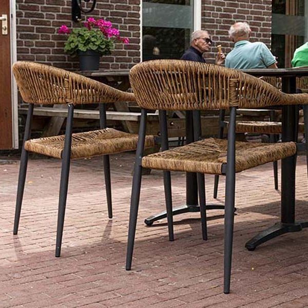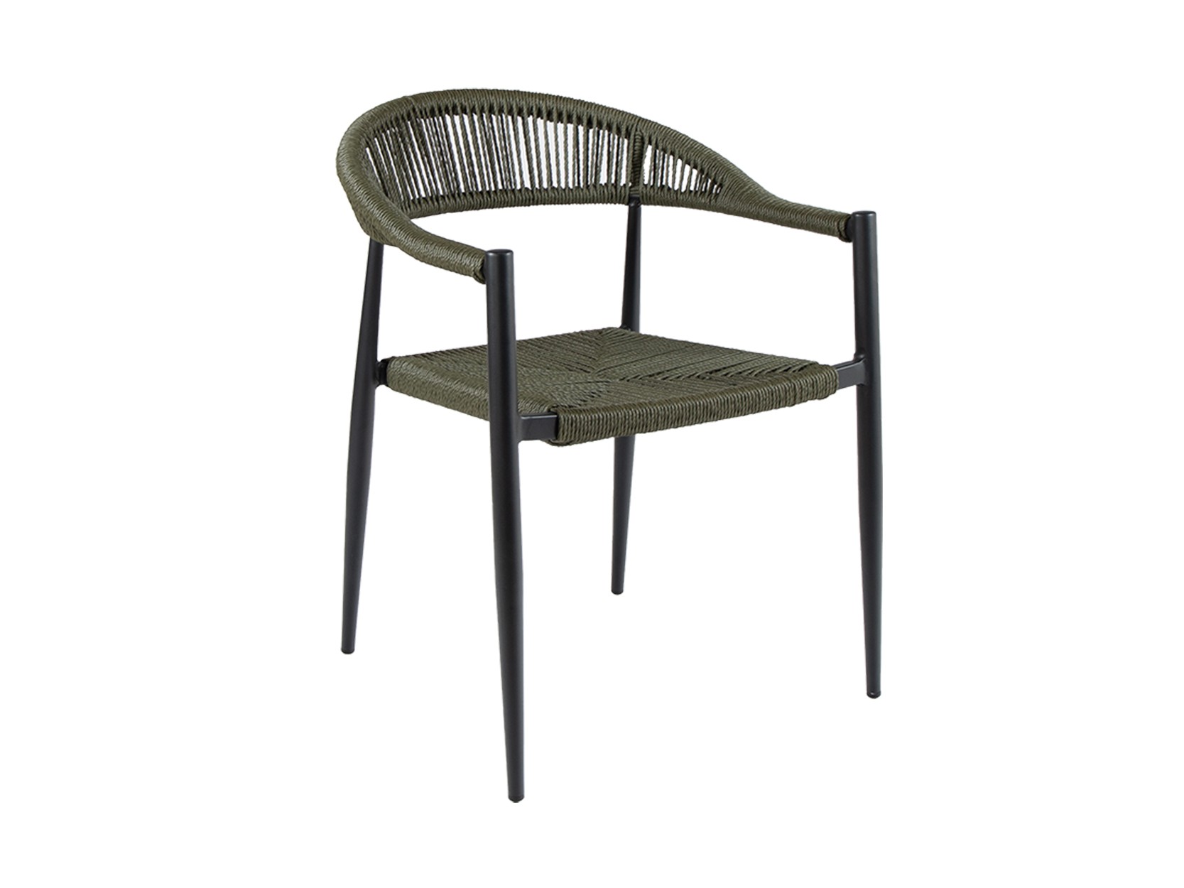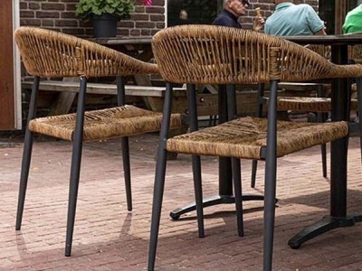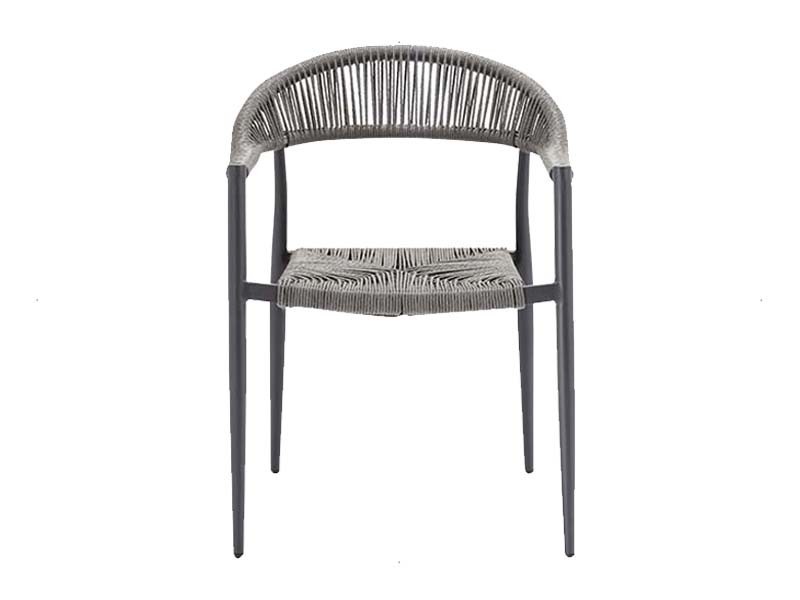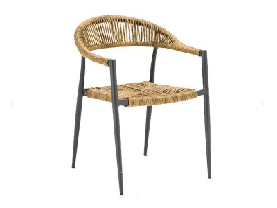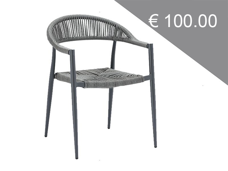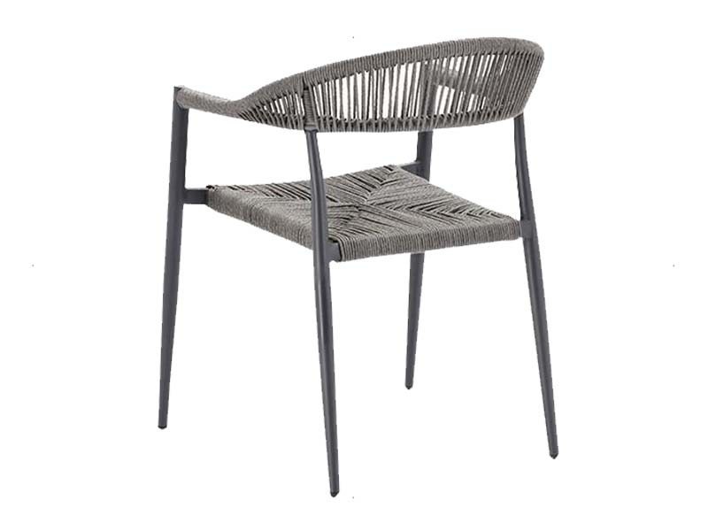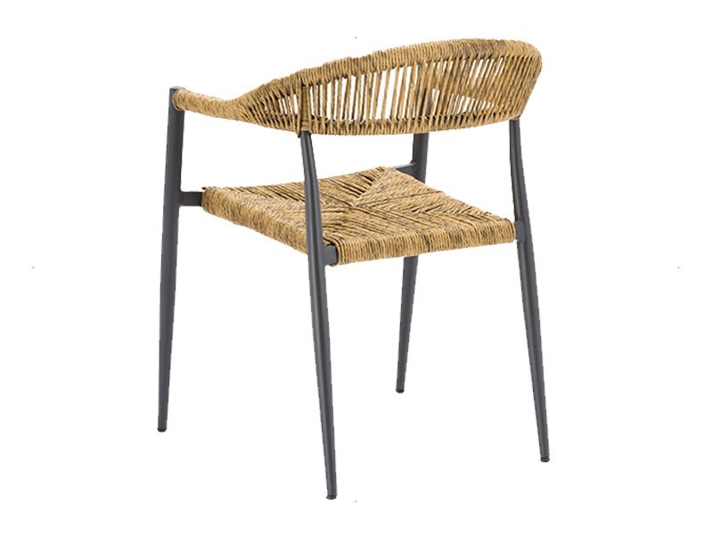 - Scaun de exterior realizat din aluminiu și împletitură din frânghie, în conformitate cu ultimele tendințe.