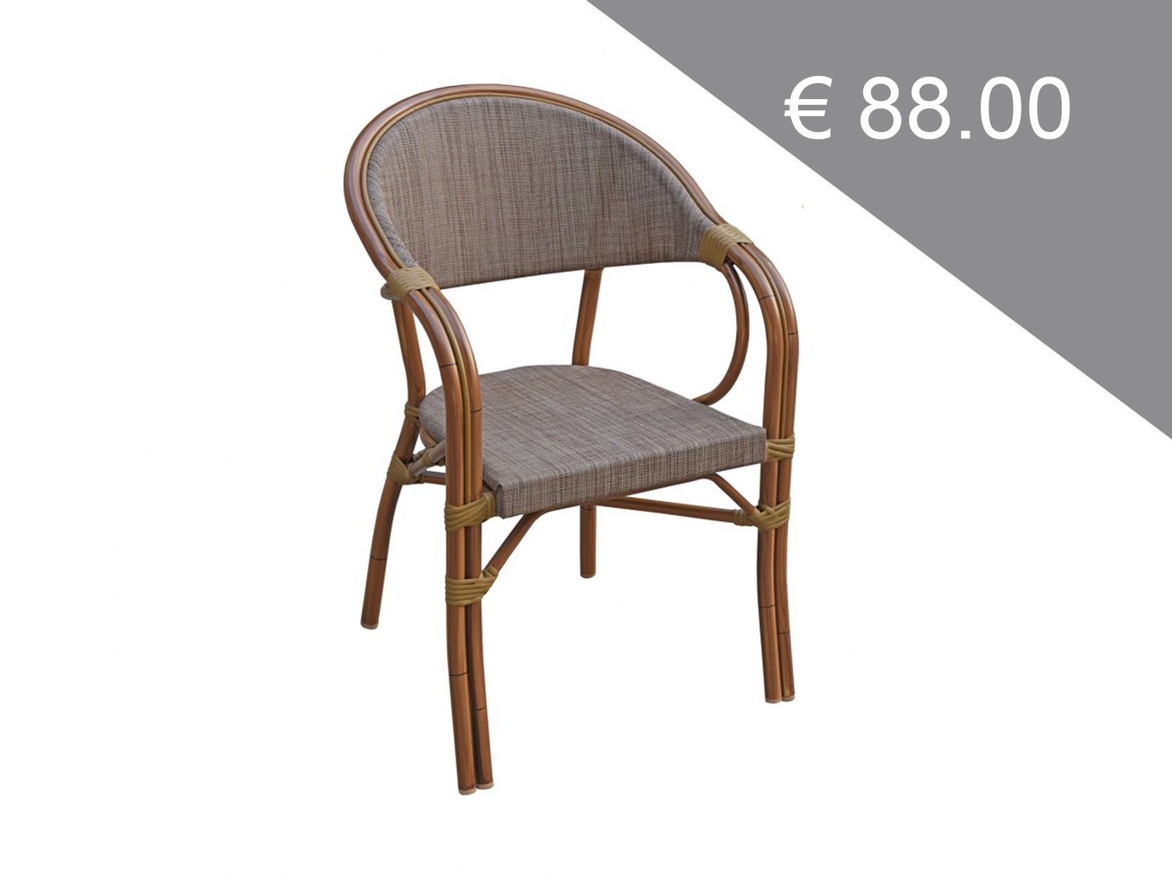 - Scaun de terasă având cadrul de aluminiu vopsit în câmp electrostatic, de nuanța bamboo.