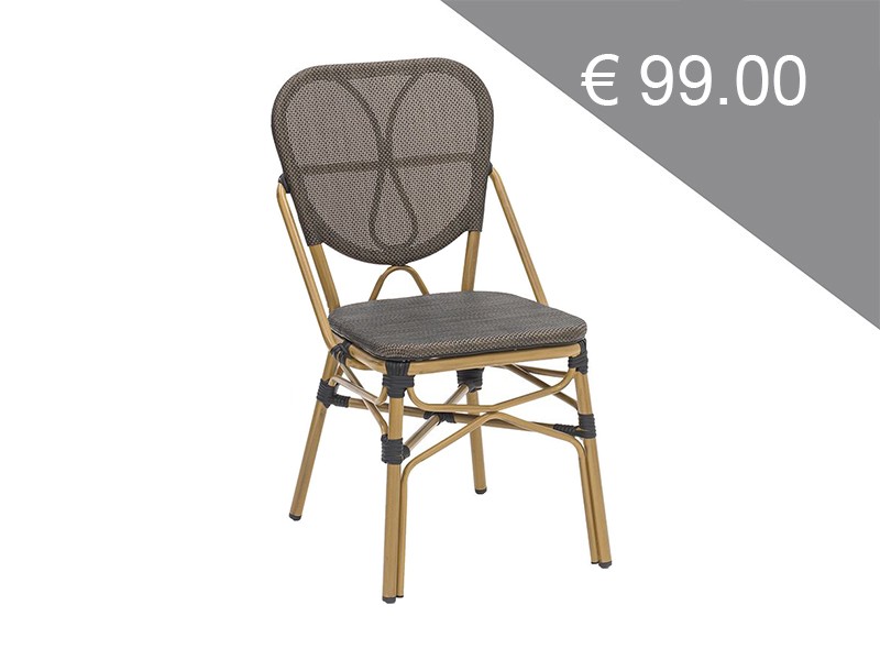- Scaunul este potrivit pentru terasă, are un cadru din aluminiu de calitate superioară, cu un aspect de lemn și un material textil rezistent la UV.