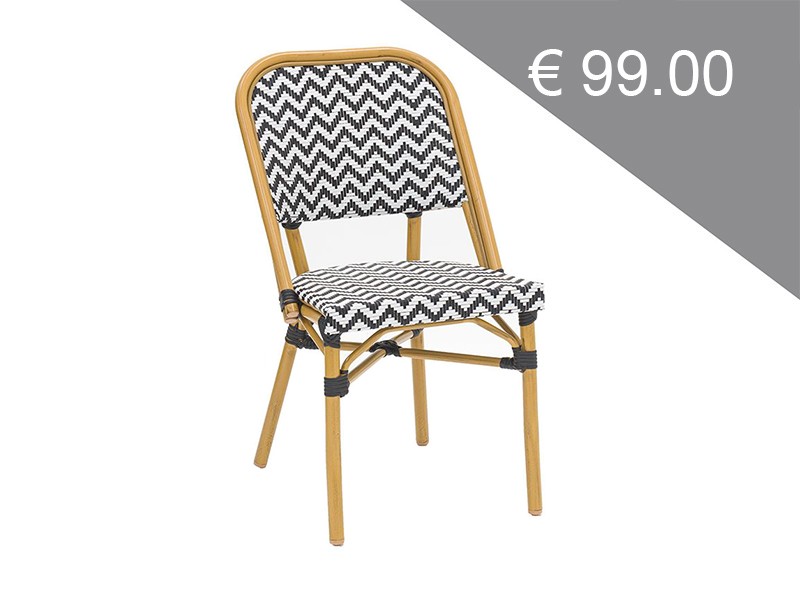 - Scaunul este potrivit pentru terasă, are un cadru din aluminiu de calitate superioară, cu un aspect de bambus și un material textil rezistent la UV.