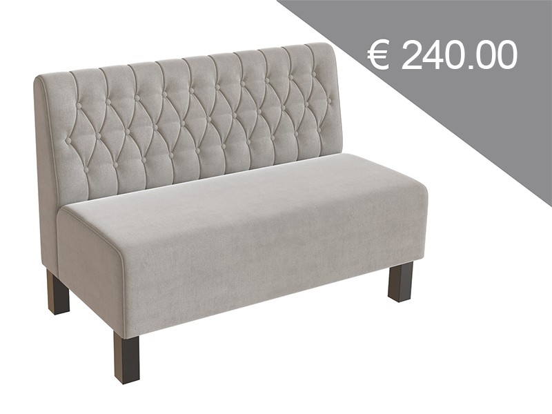 - Banchetă de restaurant cu tapițerie de tip chesterfield pe spătar.