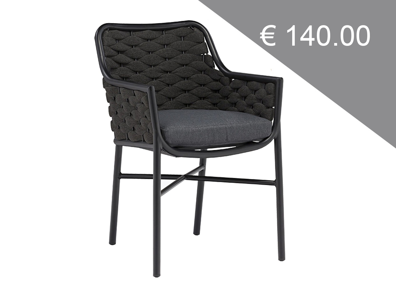 - Scaun cu brațe pentru terasă, ce îmbină armonios structura din aluminiu cu materialul textil împletit.