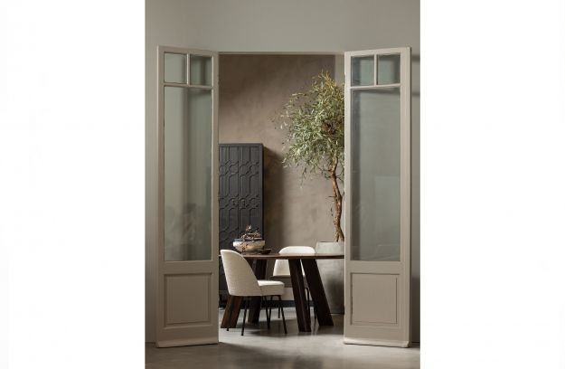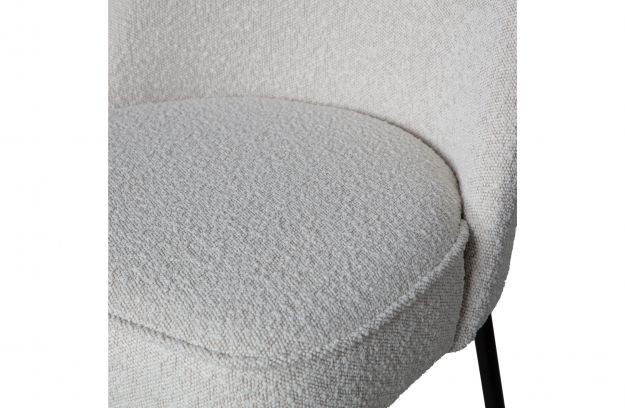 - Tapițeria scaunului este din stofă boucle, o suprafață texturată formată din mici bucle de fire.