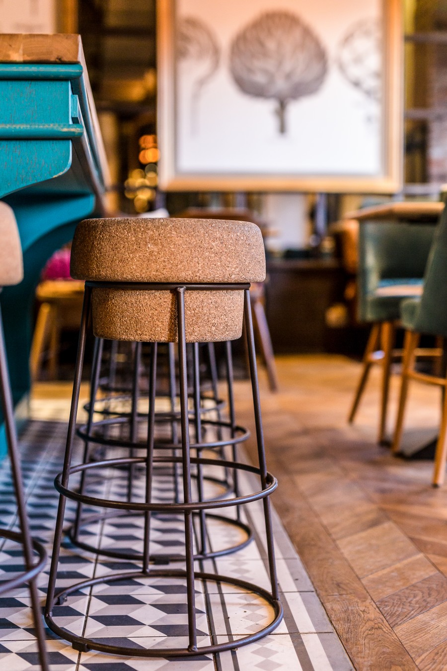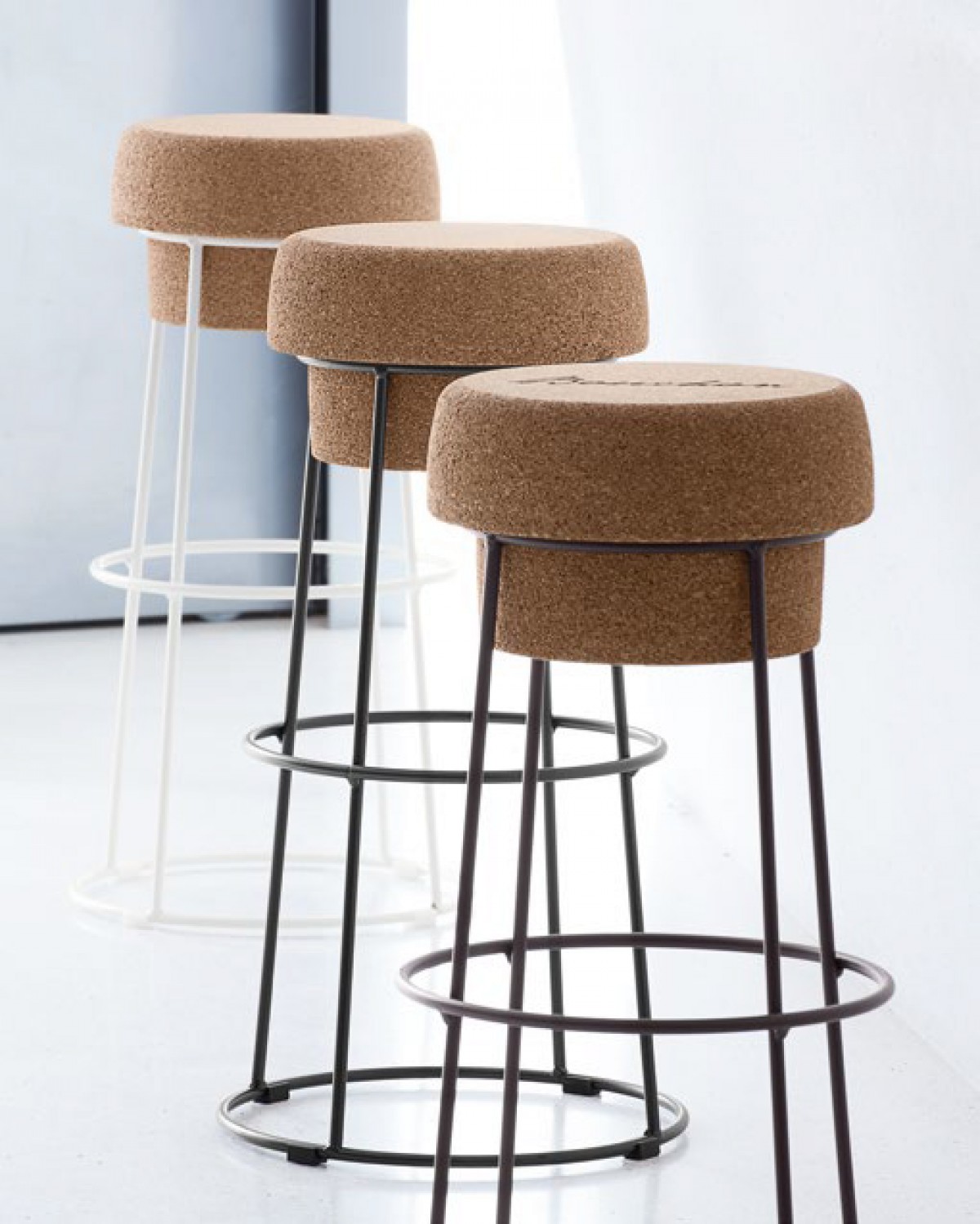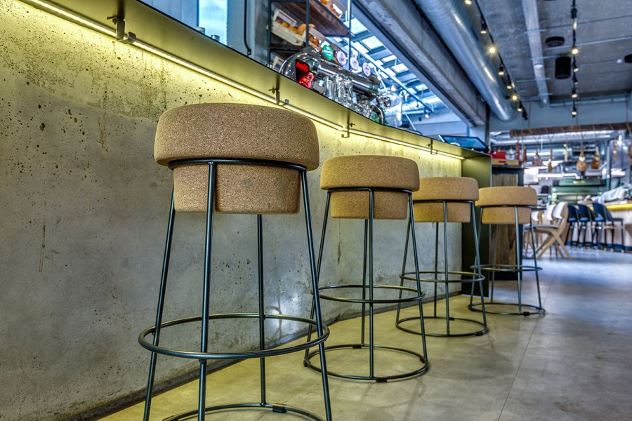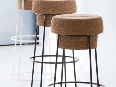 - Scaun de bar din oțel vopsit în câmp electrostatic, cu șezut din plută.