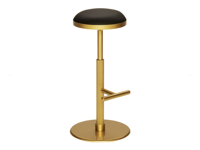 - Scaun tip taburet din oțel, disponibil în diferite finisaje.