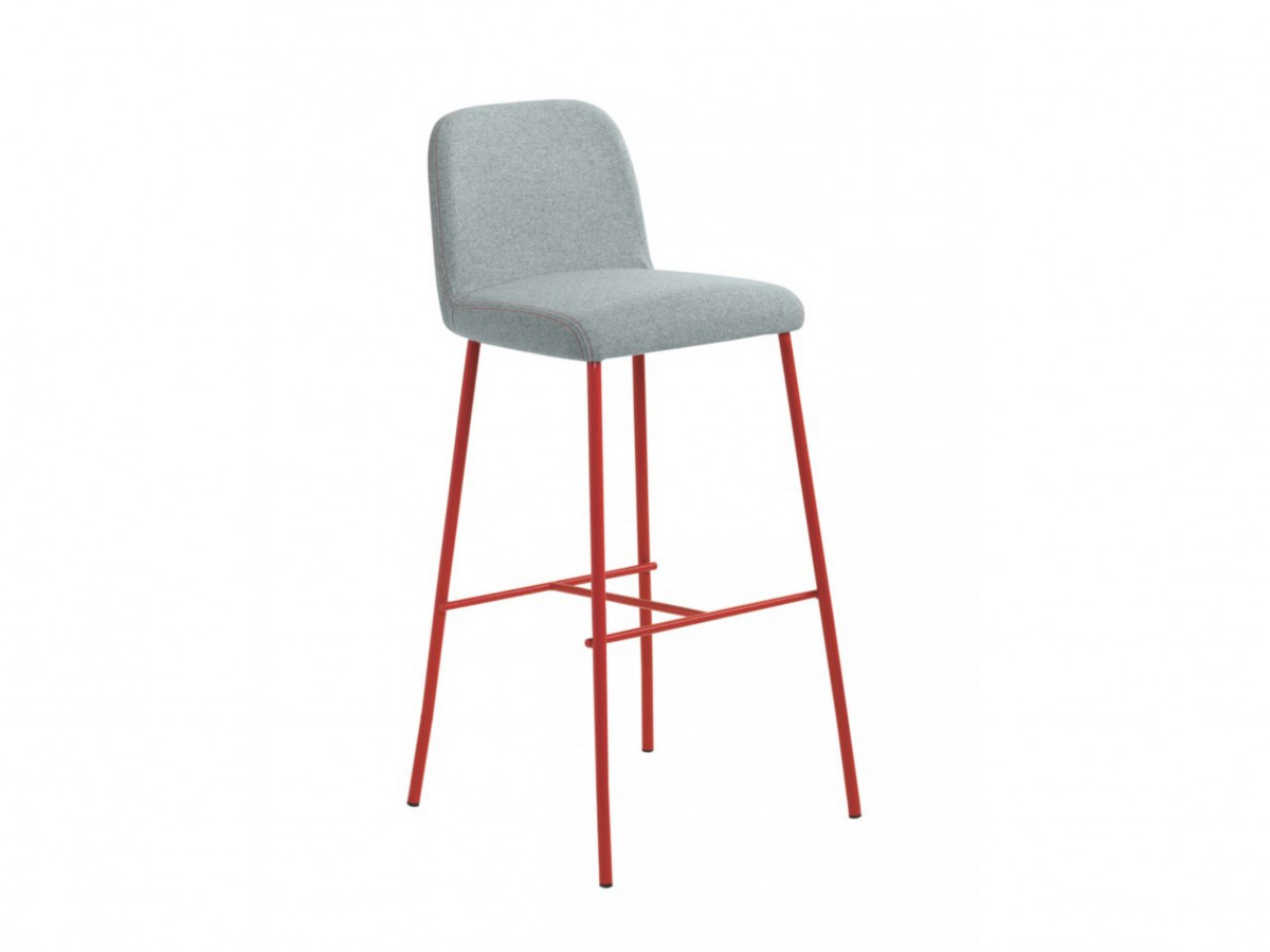 - Rama scaunului de bar Myra este realizată din oțel, iar șezutul și spătarul sunt tapițate.