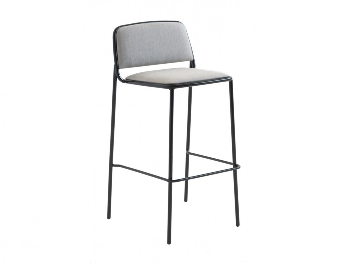 - Rama scaunului de bar Ring este realizată din oțel, iar șezutul și spătarul sunt tapițate.