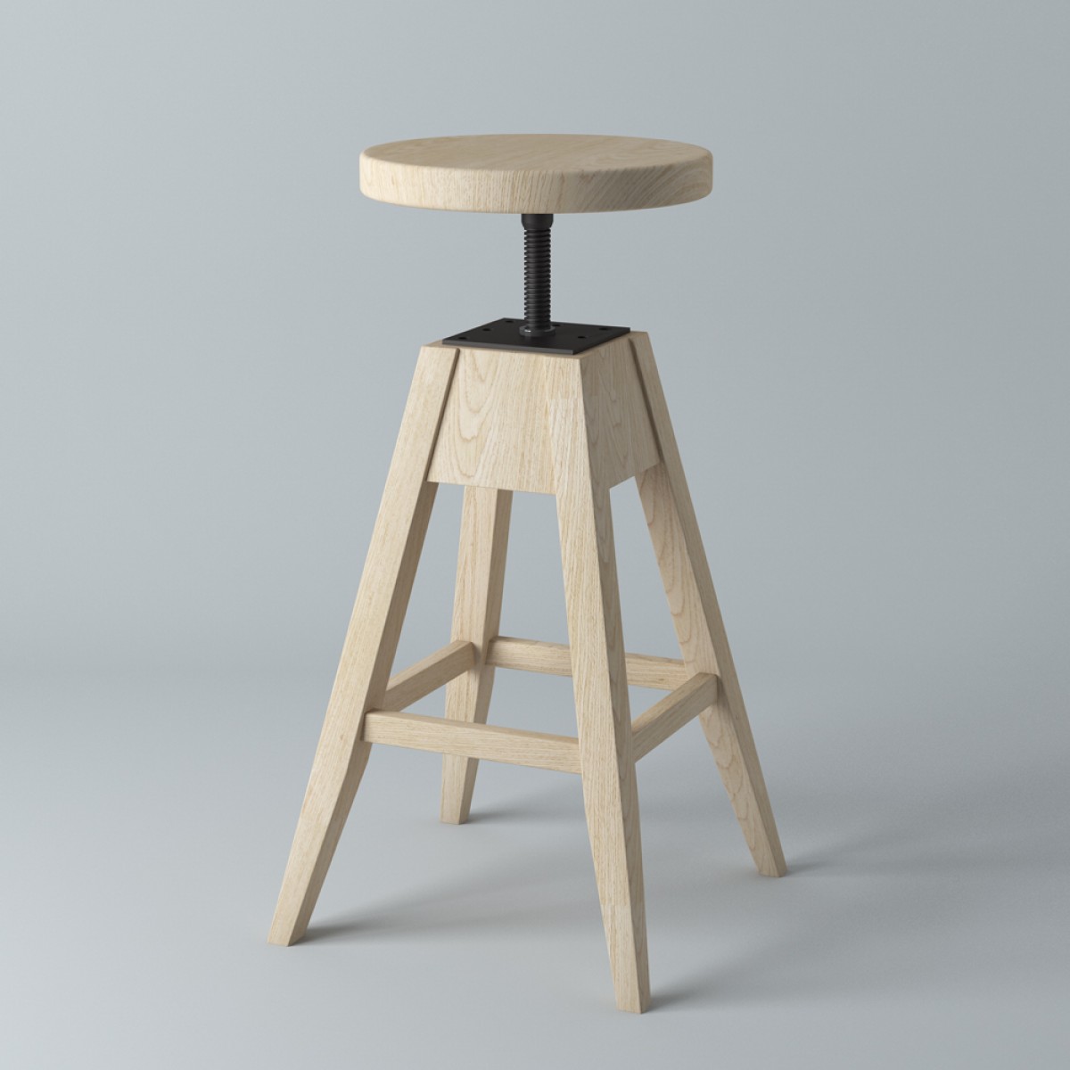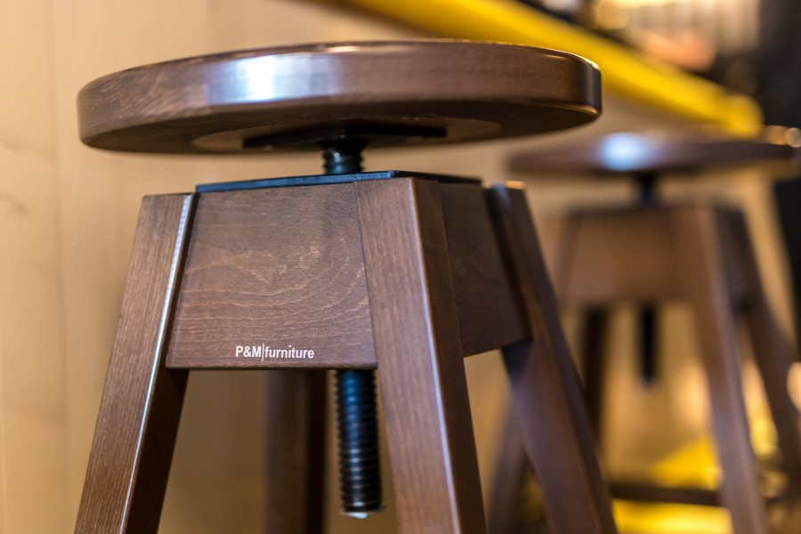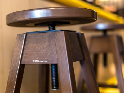 - Scaun de bar din lemn de fag, cu sistem de reglare a înălțimii prin rotire / înșurubare.