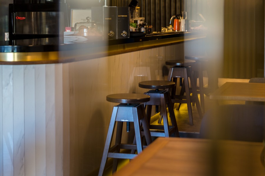 - Acest scaun de bar împacă într-un mod inovator caracterul tradițional al lemnului cu design-ul modernist.