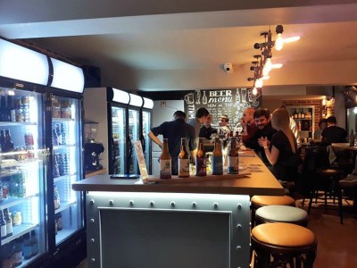 - Scaun de bar tip Thonet, din lemn de fag curbat.
