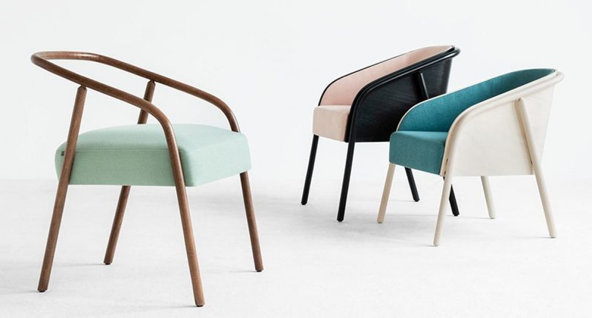 - Elementul caracteristic este cadrul structural din lemn curbat, care are rol de picioare, cotiere și spătar.