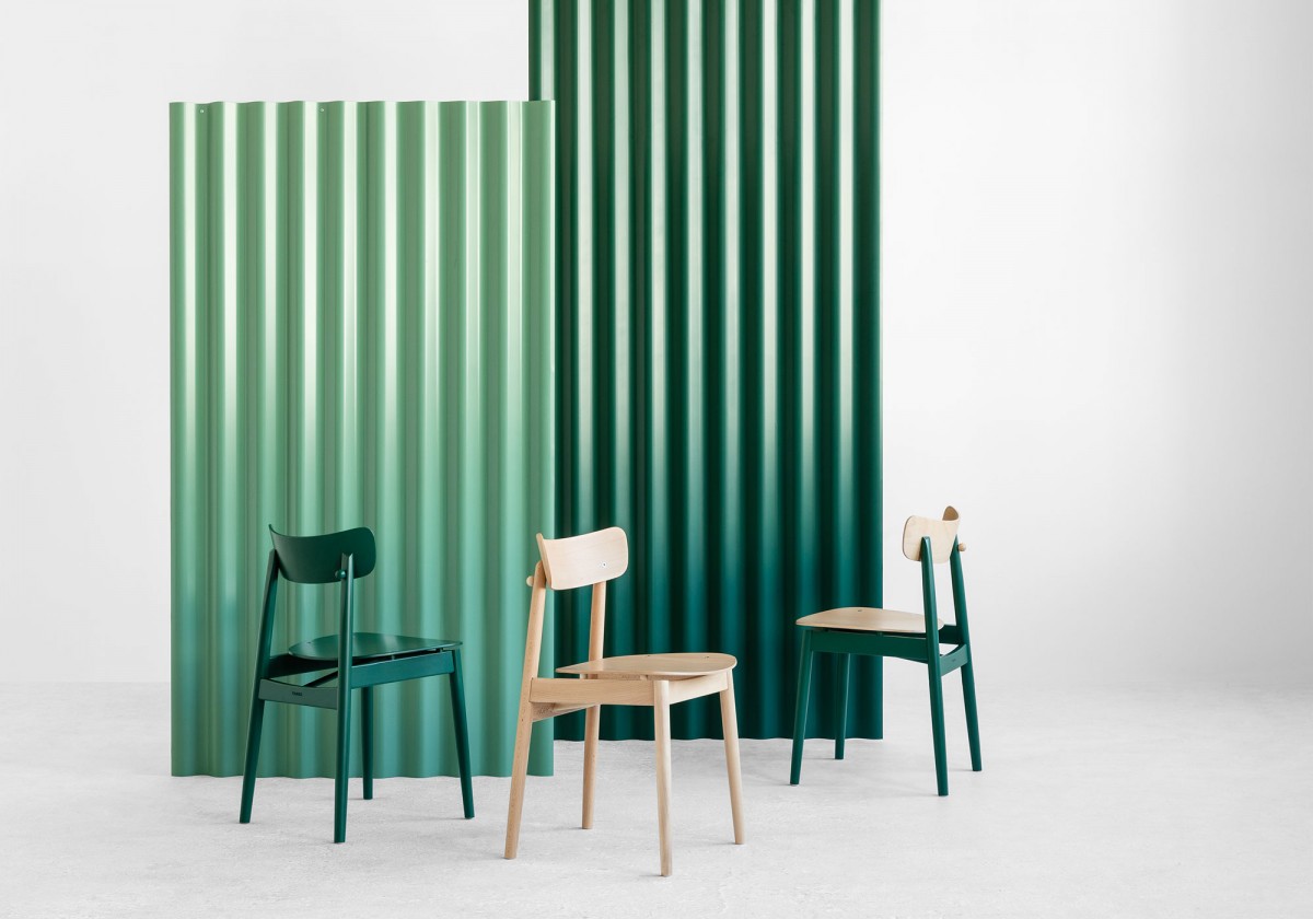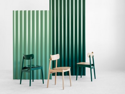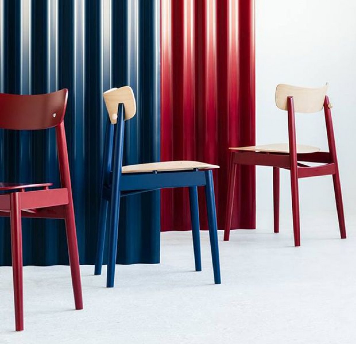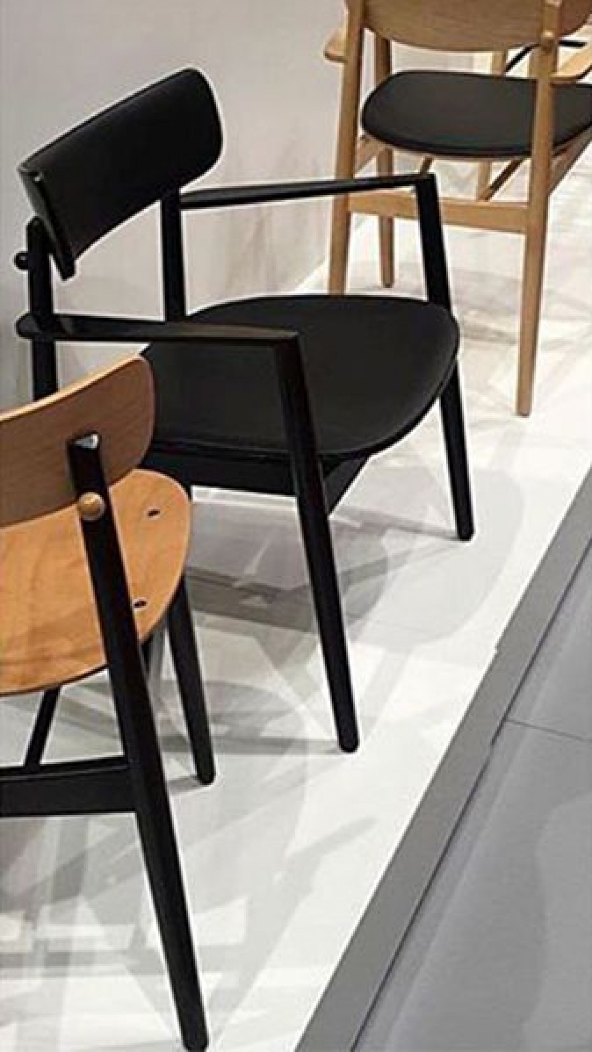 - Seria include un scaun fără brațe, un scaun cu brațe, un fotoliu și un scaun de bar.