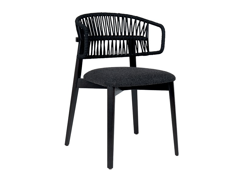 - Coffee Cord este un scaun contemporan confecționat din lemn de frasin, cu un spătar împletit pentru un aspect distinctiv.