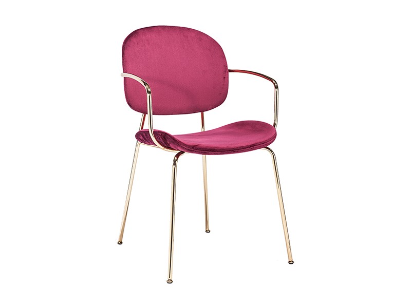 Scaun de metal cu brațe, șezut și spătar tapițate.