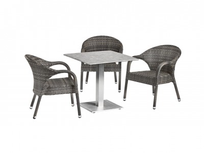 - Scaun de terasă cu mânere, având cadrul de aluminiu vopsit în câmp electrostatic.