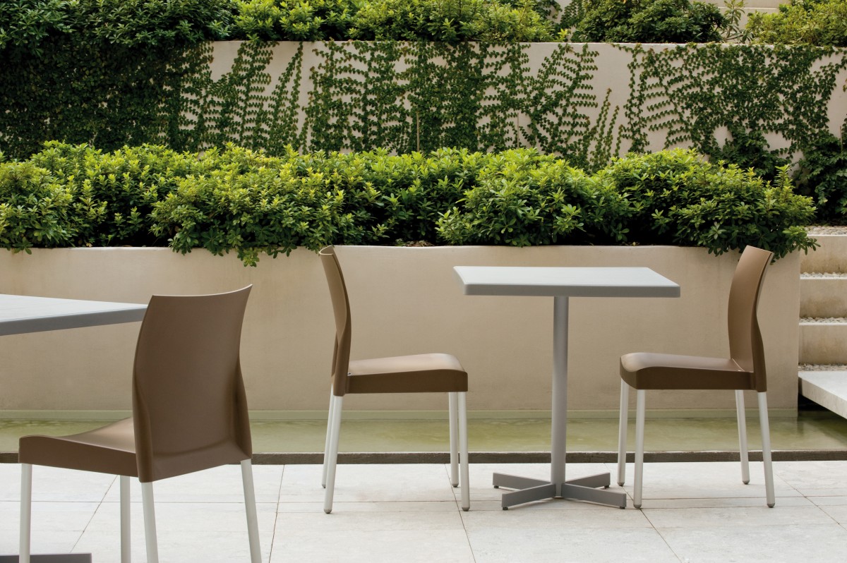 - Ice este un scaun din polipropilenă, rezistent la razele UV și apă.