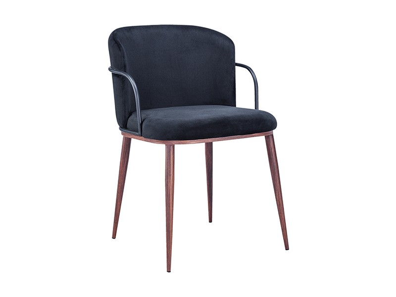 Scaun cu brațe, cu cadru de metal, șezut si spătar tapitațe.