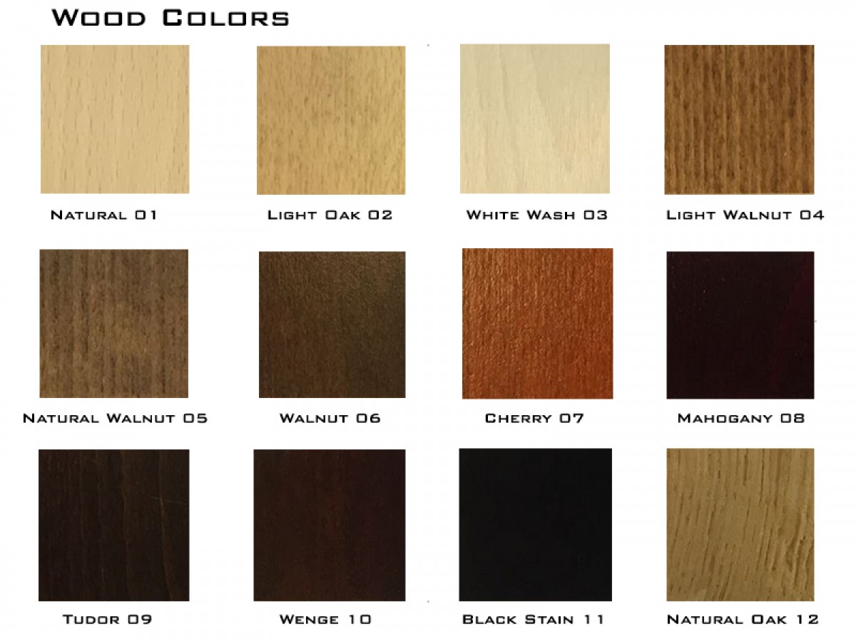 - O gamă largă de nuanțe ale lemnului, iar șezutul poate fi furniruit sau tapițat cu diferite tipuri de material.