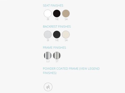 - Mya 701 are șezutul din polipropilenă și spătarul din textil.
