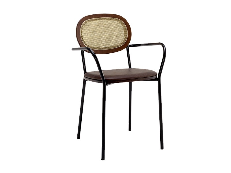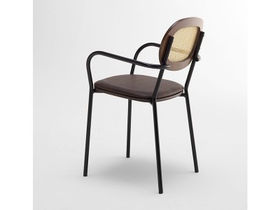 - Are cadrul confenctionat din metal, cu șezut și spătar din placaj vopsit/învelit în tapițerie/spătar din ratan.