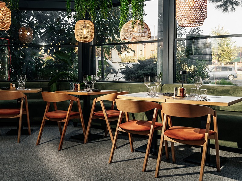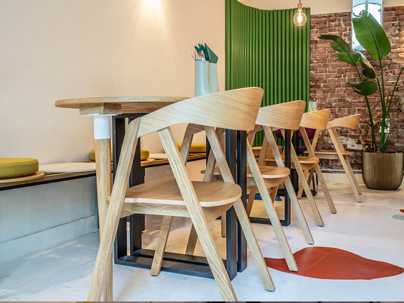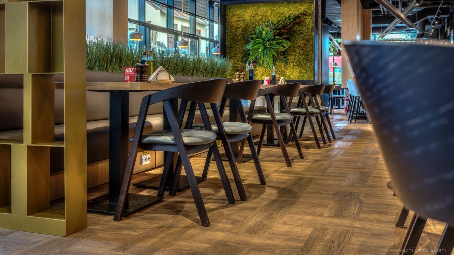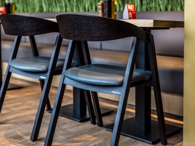 - Scaun cu structură din lemn de stejar, finisat cu lac poliuretanic, pentru rezistență la uzură intensă.