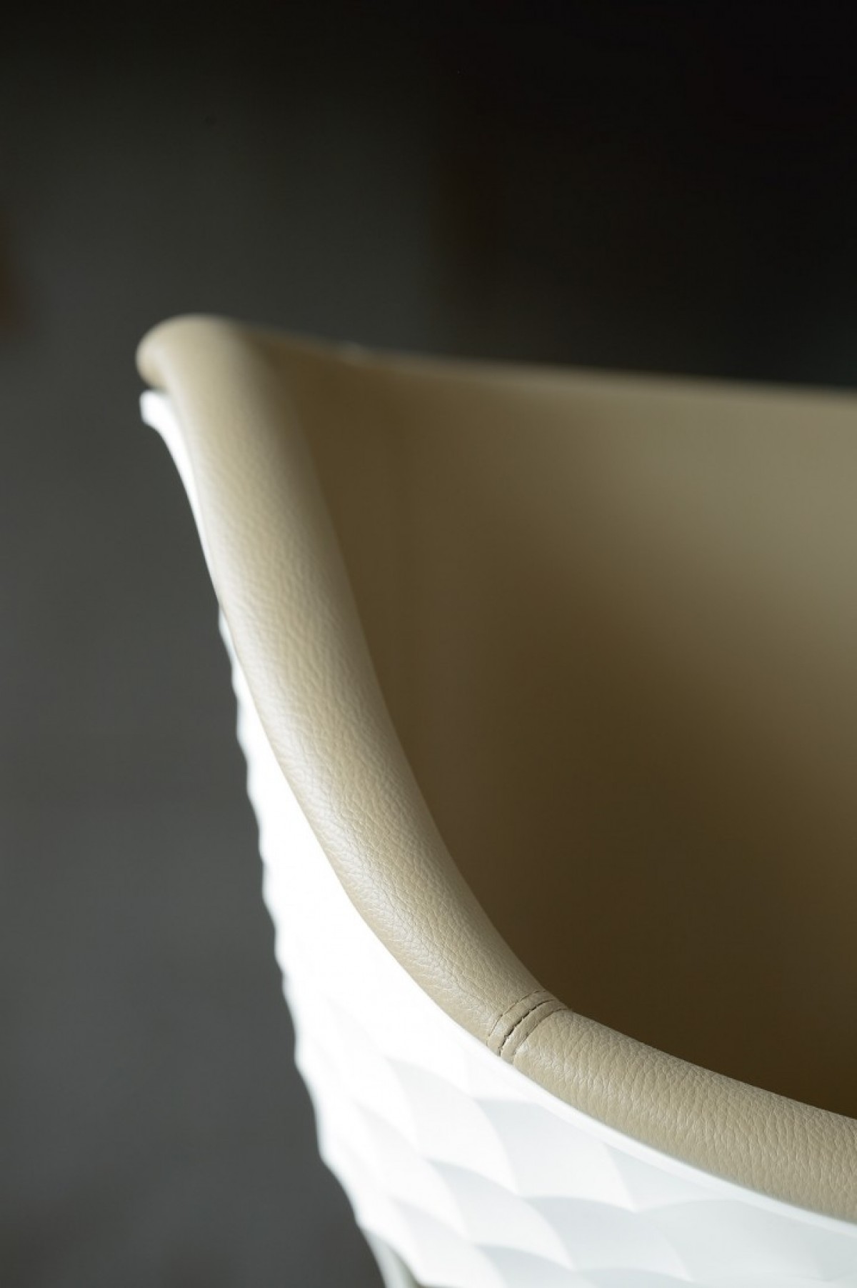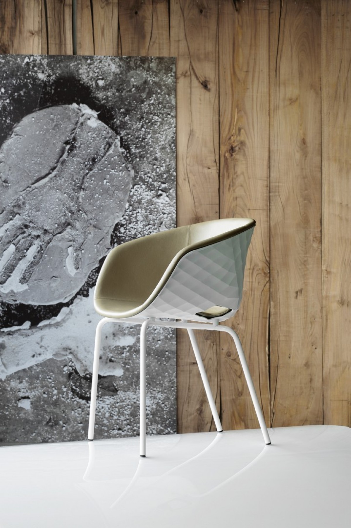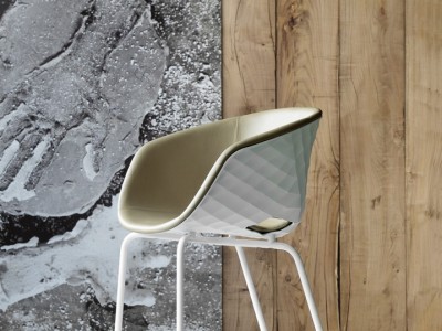 - Scaun cu o scoică adâncă, realizată din polipropilenă tapițată într-o gamă variată de culori.